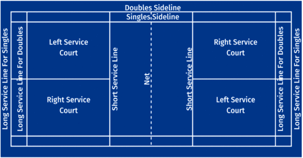- Distance of short service lines away from the net – 1.98 m (6 ft, 6 inches)